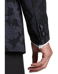 - Polyester/viscose blend|Satin peak lapel|Two-button closure|Satin piped pocket edges|Slim Fit|
