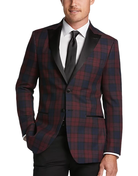 A traditional tartan plaid brings a classic look to this dinner jacket by After Hours. Perfect for holiday festivities and beyond, it’s styled with a Slim Fit for a lean, toned silhouette.