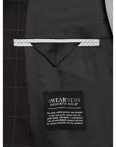 - 64% polyester 35% viscose 1% spandex|Two button|Notch lapel|Flap pockets|Side vents|3/8 lined|Modern Fit|Awearness Kenneth Cole|