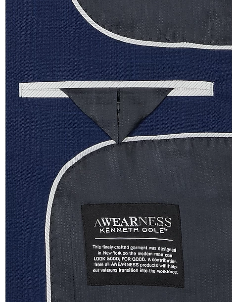 Rich, blue windowpane helps you create a standout menswear look. This fine suit by Awearness Kenneth Cole is conveniently pre-hemmed and flatters with a trim, Modern Fit.