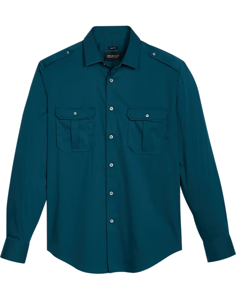 Introduce this military-style shirt to your collection of sport shirts and you’ll have something new for your casual evenings and weekends. The cotton-blend fabrication means you’ll stay comfortable all day long.