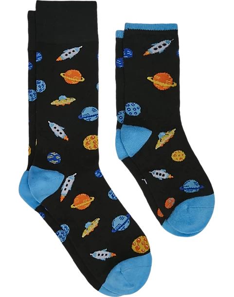 Enjoy twinning with a little one in this fantastic two pack of socks from Egara. Made with soft cotton, these matching adult and child socks rock with planets, UFOs, and rockets woven throughout for look and feel that is out of this world.