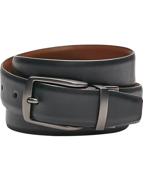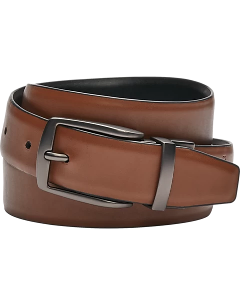 Detailed with feathered edging, this reversible belt from Egara doubles your options.