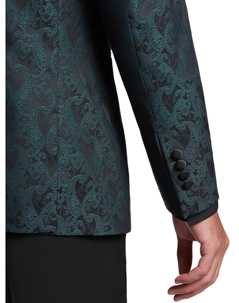 This dinner jacket from Egara combines the sophisticated style of a satin peak lapel with the modern feel of a paisley print. A Slim Fit and emerald-green hue make it a fashionable choice for special occasions.
