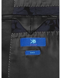 Create a memorable and stylish formal wear look with this deep, dark, richly patterned jacket by Egara. This one-button formal jacket features a smooth satin peak lapel and besom pockets.