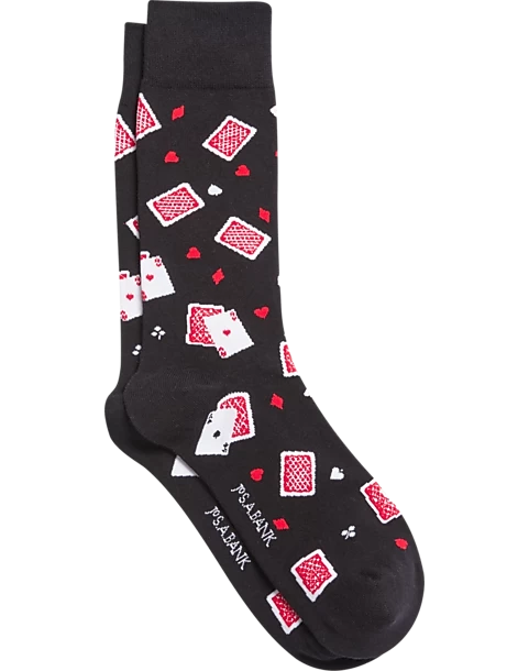 Fun and stylish, these colorful socks by Egara feature a fun pattern of playing cards on a black background.
