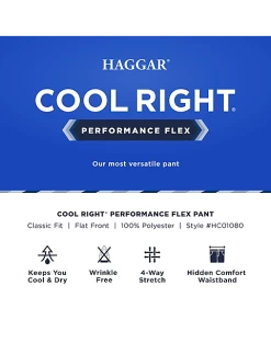 - flat front|Pre-hemmed|Cool Right®|Performance Flex|Classic Fit|Haggar|