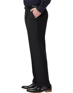 - 78% polyester 22% recycled polyester|Wrinkle-resistant|Stretch fabric|Expandable waistband|Shirt gripper for a neat look|Pleat front|Classic Fit|Haggar Premium Comfort|