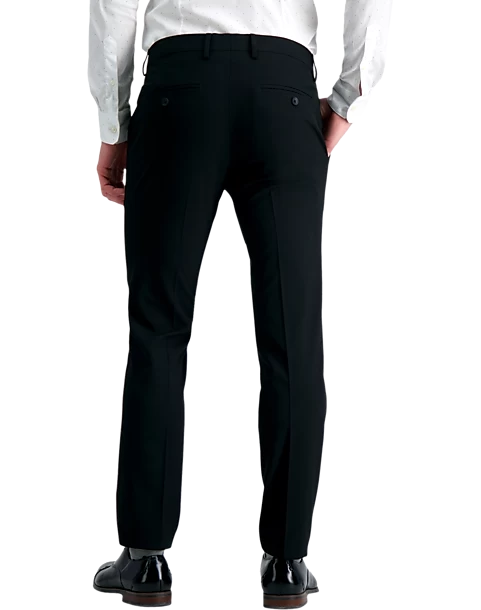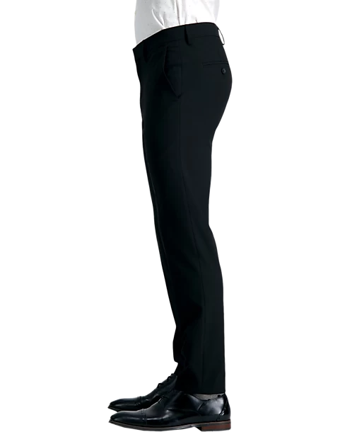 Elevate your wardrobe with this ultra slim fit dress pant from Haggar. Featuring a Premium Flex Waistband, hook and bar closure in a flat front silhouette. Crafted in 67% polyester, 28% viscose rayon and 5% spandex providing stretch and great recovery.