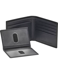 Rich, pebbled leather with pick-stitched edging add character and style to this slim, bi-fold wallet by Joseph Abboud.