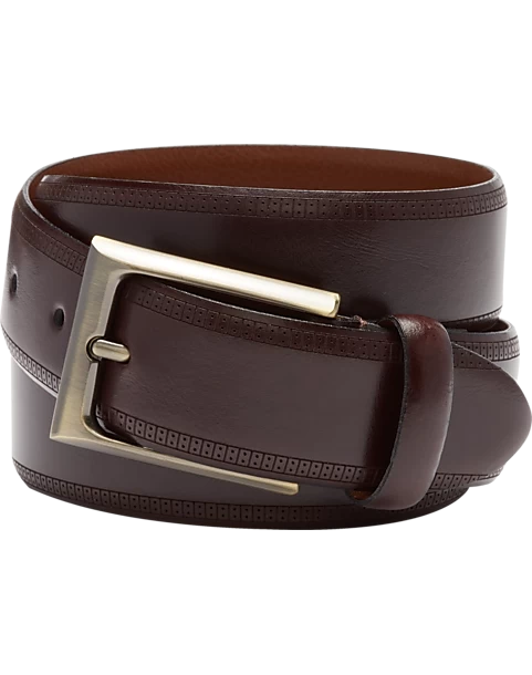 Crafted in Italy from genuine leather, this fine belt from Joseph Abboud is finished with feather edging, laser detailing, and a silver-tone buckle to polish off your look.