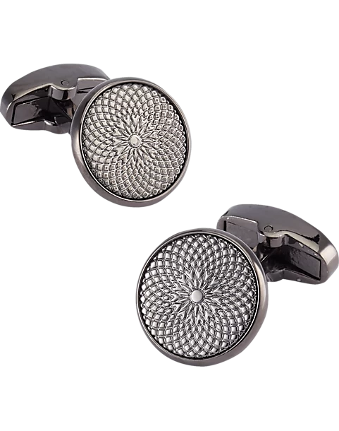 These polished gunmetal cufflinks will give the perfect finishing touch to your look. They feature a polished circle centerpiece with a textured pattern.