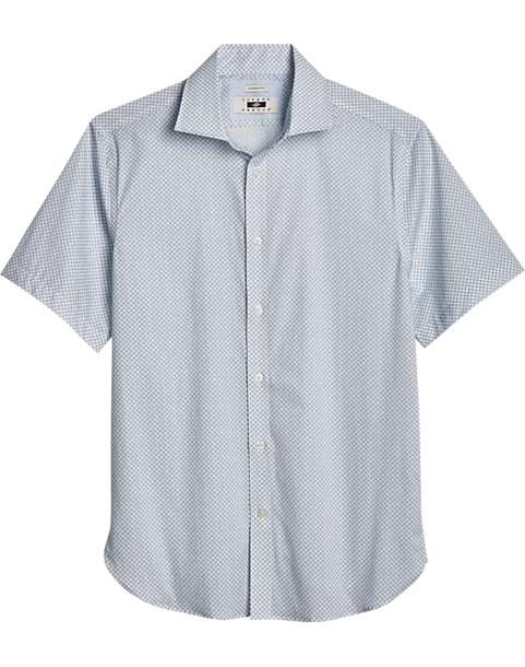 Woven into a finely dotted paisley design, this Joseph Abboud sport shirt has a flattering Modern Fit and short sleeves for warm weather days.