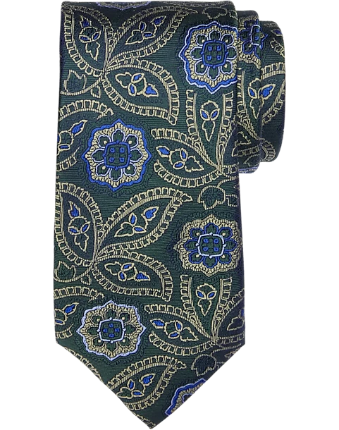 Stylized paisleys and floral medallions in contemporary color combinations mix it up on this fine silk tie from Joseph Abboud.
