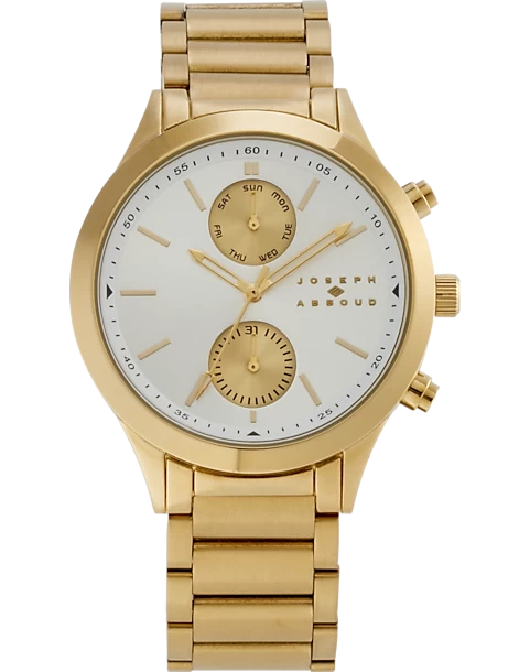 - Gold-tone finish|Stainless steel case back|Two subdials|Analog with second hand|Joseph Abboud|