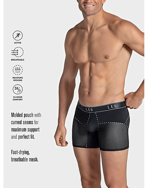 Made from ComfortTech, Leo by Leonisa’s super soft signature microfiber, these boxer briefs keep you cool and dry all day long thanks to ventilated power mesh construction. An ergonomically designed pouch provides comfortable support.