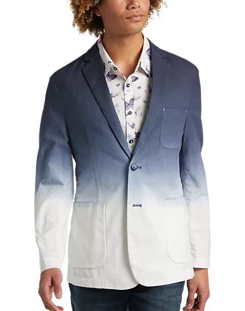 A refreshing blue to white ombre washes over this tie-dyed blazer by Paisley & Gray. Woven from a crisp cotton blend into a trim, Slim Fit, it will easily enliven your dress-casual ensembles.