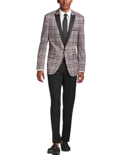 Styled with a bold, plaid print and a peak lapel in a solid color, this Slim Fit jacket from Paisley & Gray has a trim look and a modern attitude.