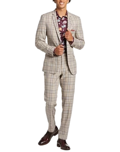 - 64% polyester — 34% rayon — 2% spandex|Peak lapel|One-button closure|Slim Fit|Paisley & Gray|