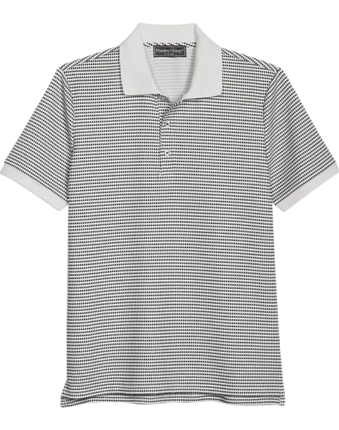 Paisley & Gray Slim Fit Polo, White & Black Dot