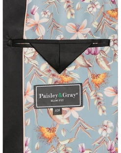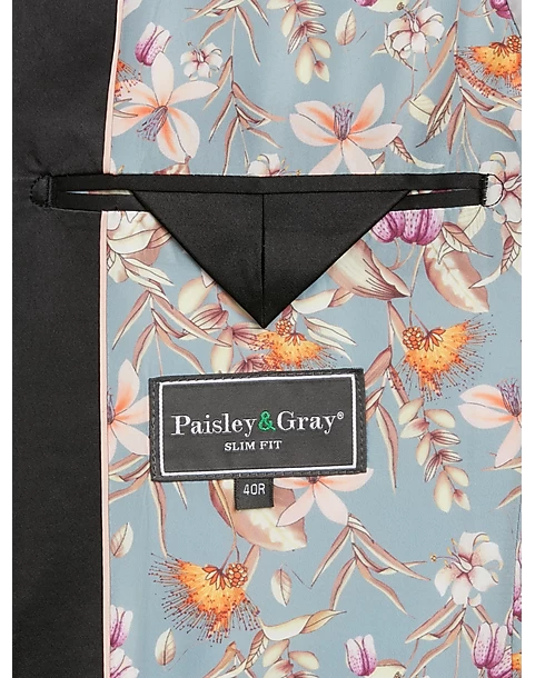 - Polyester Blend|One button|Shawl lapel|Side vents|Coordinating pieces sold separately|Matching Pant: TMW_3XJD_3XJE_25|Slim Fit|Paisley & Gray|