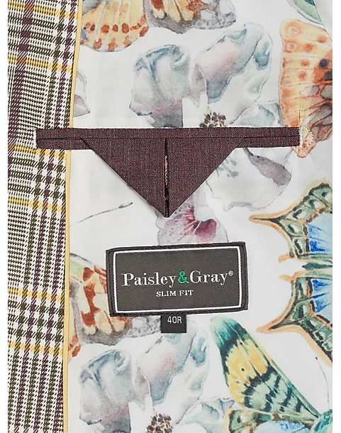 - 100% polyester|Two button|Notch lapel|Side vents|Coordinating pieces sold separately|Slim Fit|Paisley & Gray|