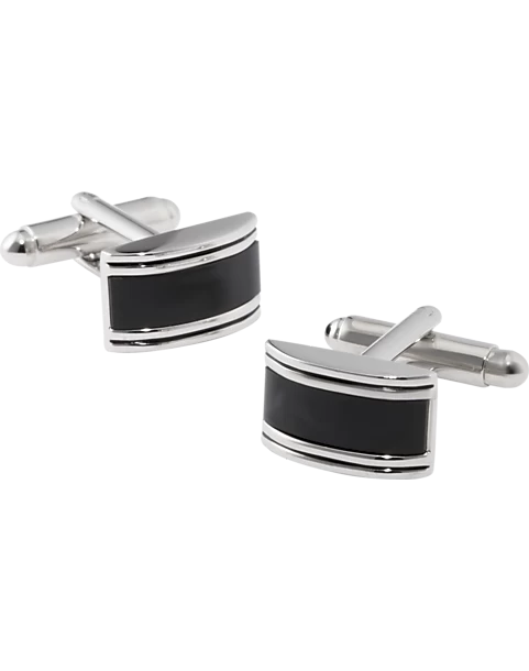 Rich black onyx set in polished silver-tone metal define these luxe cufflinks from Pronto Uomo. Cut into a rectangular shape with grooved edges, they will add the perfect modern touch to your dress wear ensemble.