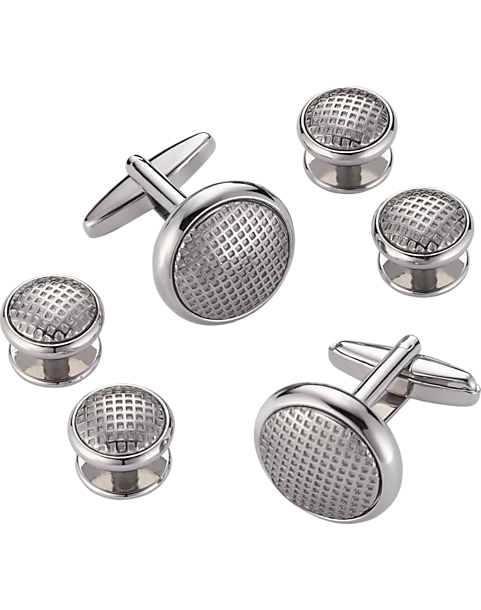 This fine cufflinks and studs set features a modern grid design in silver-tone metal. Wear it to complete your look.