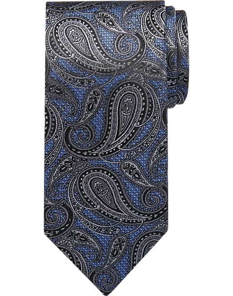 Pronto Uomo Narrow Tie, Blue & Charcoal Paisley