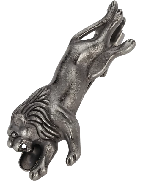Used to firmly attach your tie to your shirt for a neat, smooth look, this tie bar from Egara is shaped like a leaping lion.