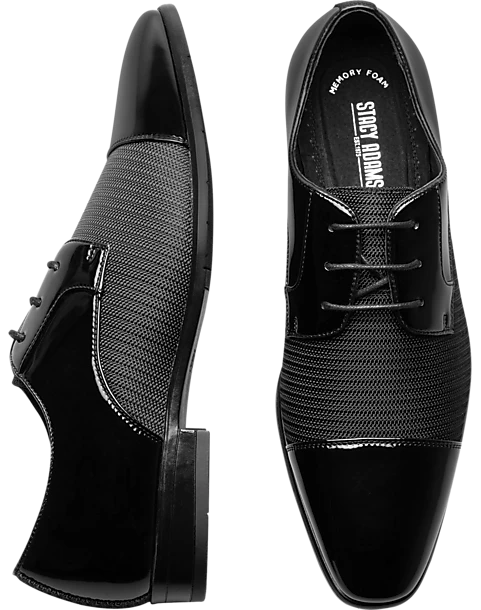 The Stacy Adams Pharaoh shoe imparts a truly royal look. It features cap-toe styling with a combination matte and patent finish.